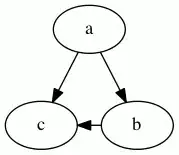 b -> cdoes not add a constraint during rank assignment, so the only constraints are that a be above b and c, yielding the graph: