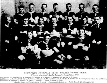 - ↑ "The Teams". The New Zealand Herald. Vol. LII, no. 16015. 6 September 1915. p. 8. Retrieved 10 August 2019.
