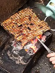 Meat being grilled for bun cha
