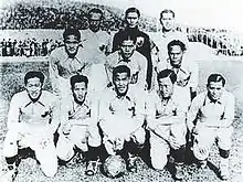 On 7 July 1937 the Second Sino-Japanese War officially erupted, which saw the relations between China and Japan completely eroded especially once it was announced that Japan would hold the 1938 Far Eastern Championship Games.[10] The tournament would be officially cancelled while Japan held their own tournament called the 2600th Anniversary of the Japanese Empire, which included the Japanese puppet states Manchukuo and the collaborationist National Reorganised Government of China based in occupied Nanjing. But none of the top Chinese players competed in the Japanese Empire anniversary games.[11] None of the games during the Second Sino-Japanese War are officially recognized and once the war ended on 9 September 1945 China looked to the Olympics once again for international recognition. On 2 August 1948 China competed in the Football at the 1948 Summer Olympics where they were once again knocked out in the last sixteen, this time by Turkey national football team in a 4–0 defeat.[12] When the players returned they found the country in the midst of the Chinese Civil War. When it ended, the team had been split into two, one called the People's Republic of China national football team and the other called Republic of China national football team (later renamed Chinese Taipei national football team).[13]