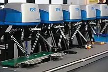 Delta robots have popular usage in picking and packaging in factories because they can be quite fast, some executing up to 300 picks per minute.[4]