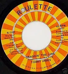 "Draggin' the Line" is a hit song by American rock musician Tommy James, who went solo after the Shondells disbanded in 1970. It was first released as the B side of "Church Street Soul Revival" in 1970. The song was judged to have some hit potential so they went back in the studio and added horns to the master and re-released it as an A side single in 1971. It was included on his second album, Christian of the World in 1971 on the Roulette Records label. The song was James' biggest hit as a solo artist[1] selling more than a million copies,[2] and appears as the fifth track on James' 1991 retrospective album The Solo Years (1970-81) released by Rhino.[3][4]