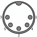 The original connectors were five-pin circular 180° DIN types. On later 32-bit machines (notably the A3020 and A4000), the Econet connection was made via five of the pins on their 15-pin D-type Network port, which could also accept MAUs (Media Attachment Units) to allow other types of network to be connected via the same socket. This port looks similar to an AUI port, but is not compatible. The Acorn A4 laptop used another implementation, in the form of a 5 pin mini-DIN.[25]