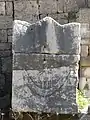 The most common type of burial in this necropolis was made up of twin-urns with the remains of the same individual - one containing the ashes and the other the bones mixed personal possessions, as well as two jugs and a bowl for drinking. About a fifth of the discovered urns with bone remains contained a scarab-amulet. The researchers, led by Professor María Eugenia Aubet from the Pompeu Fabra University in Barcelona, also excavated a few stelae which bore inscriptions and human masks sculpted from terracotta.[8] Some of them are considered to be masterpieces and on display at the National Museum of Beirut.[10] Altogether, one has to imagine a beach with such personalised gravestones sticking out of the sand, with a view on the fortified island city. Aubet concludes: