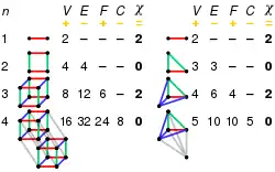| Name | Image | Vertices V | Edges E | Faces F |