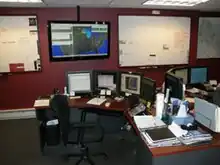 A flight dispatcher (also known as an airline dispatcher or flight operations officer) assists in planning flight paths, taking into account aircraft performance and loading, enroute winds, thunderstorm and turbulence forecasts, airspace restrictions, and airport conditions. Dispatchers also provide a flight following service and advise pilots if conditions change. They usually work in the operations center of the airline. In the United States and Canada, the flight dispatcher shares legal responsibility with the commander of the aircraft (joint responsibility dispatch system).[1]