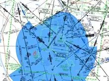 These are designated routes which aeroplanes fly to aid in navigation and help with separation to avoid accidents.[3][4][5][lower-alpha 1] Airways are defined with segments within a specific altitude block, corridor width, and between fixed geographic coordinates for satellites navigation system, or between ground-based radio transmitter navigational aids (navaids; such as VORs or NDBs) or the intersection of specific radials of two navaids.