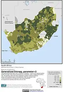 The generalized entropy index has been proposed as a measure of income inequality in a population.[1] It is derived from information theory as a measure of redundancy in data. In information theory a measure of redundancy can be interpreted as non-randomness or data compression; thus this interpretation also applies to this index. In addition, interpretation of biodiversity as entropy has also been proposed leading to uses of generalized entropy to quantify biodiversity.[2]