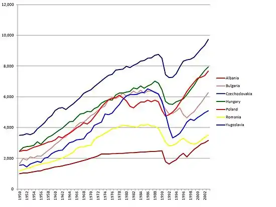 In June 1953, thousands of workers in Plzeň went on strike to demonstrate against a currency reform that was considered a move to solidify Soviet socialism in Czechoslovakia.[29] The demonstrations ended without significant bloodshed, disappointing American Director of Central Intelligence Allen Dulles, who wished for a pretext to help the Czechoslovak people resist the Soviets.[30] For more than a decade thereafter, the Czechoslovak communist political structure was characterized by the orthodoxy of the leadership of party chief Antonín Novotný, who became president in 1957 when Zápotocký died.
