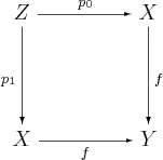 - is a pullback, then the coequalizer of p0, p1 exists. The pair (p0, p1) is called the kernel pair of f. Being a pullback, the kernel pair is unique up to a unique isomorphism.