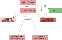 - ↑ Velayos, FS; Williamson, A; Sousa, KH; Lung, E; Bostrom, A; Weber, EJ; Ostroff, JW; Terdiman, JP (June 2004). "Early predictors of severe lower gastrointestinal bleeding and adverse outcomes: a prospective study". Clinical Gastroenterology and Hepatology. 2 (6): 485–90. doi:10.1016/s1542-3565(04)00167-3. PMID 15181617.
