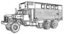 The M820 Expansible van truck had a 17 ft (5.2 m) long van body with a slide out section on each side. When the sections are extended the working floor was almost 14 ft (4.3 m) wide. The body could support 5,000 lb (2,300 kg) of communications equipment. Heaters and air-conditioners (except the M820A1) were housed above the cab. The M820A1 had no windows or air-conditioning, the M820A3 and M820A4 had a hydraulic rear lift gate. None had a front-mounted winch.[20]