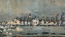 In January 1903, as the naval blockade of Venezuela continued during the negotiations with presidente Cipriano Castro, the German warship SMS Panther attempted to enter Lake Maracaibo, which was a center of German commercial activity. On 17 January, it exchanged fire with the settlement of Fort San Carlos, but withdrew after half an hour, as shallow waters prevented it getting close enough to the fort to be effective. The Venezuelans claimed this as a victory, and in response the German commander sent the SMS Vineta, with heavier weapons, to set an example. On 21 January, the Vineta bombarded the fort, setting fire to it and destroying it, with the death of 25 civilians in the nearby town.