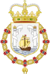 First version of coat of arms with royal elements, according to Discrezión de la laguna de la ciudad de Maracaibo in General Archive of the Indies.