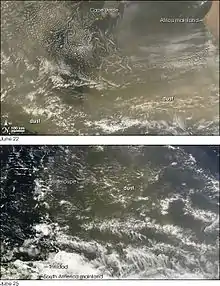 - ↑ Hansen, Kathryn (December 17, 2007). "Sharan Dust has chilling effect on North Atlantic". NASA. Archived from the original on 2017-05-31. Retrieved 2008-01-08.
