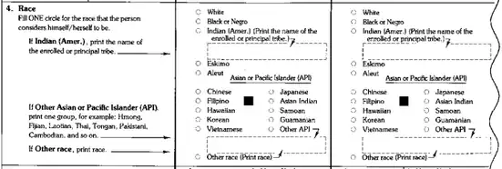 In the 2000 U.S. Census, Americans were able to self-identify as more than one racial group, marking the first time that multiracial identities were legally recognized by the United States.[14] Calculations based on the U.S. Census Bureaus’ s 2005-2015 American Community Surveys and 2000 decennial census show that the number of individuals who identify as more than one race rose by 106 percent between 2000 and 2015.[14] Furthermore, a 2018 report from the U.S. Census Bureau projects that, if trends continue, the multiracial population will triple in size by 2060.[14]