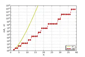 Cited in: G. Robin: Estimation de la fonction de Tchebychef sur le k-ieme nombre premier et grandes valeurs de la fonction , nombre de diviseurs premiers de n. Acta Arithm. XLII (1983) 367–389 (PDF 731KB); p. 371 - ↑ Sloane, N. J. A. (ed.). "Sequence A002182 (Highly composite numbers)". The On-Line Encyclopedia of Integer Sequences. OEIS Foundation.
