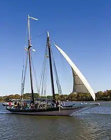 The pungy /ˈpʌŋɡi/ is a type of schooner developed in and peculiar to the Chesapeake Bay region. The name is believed to derive from the Pungoteague region of Accomack County, Virginia, where the design was developed in the 1840s and 1850s.[1]