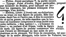 9. Claude Augé, ed. (1897–1905). "Ironie (irony)". Nouveau Larousse illustré. Vol. 5. Paris. p. 329.{{cite book}}: CS1 maint: location missing publisher (link)