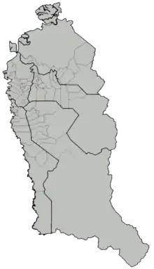 Temburong District (Malay: Daerah Temburong; Jawi: دائيره تمبوروڠ), or simply Temburong (Malay: [tǝmburoŋ] ⓘ) is the easternmost district in Brunei. It is an exclave surrounded by Malaysia and the Brunei Bay. Temburong is accessible from Brunei's mainland via the Sultan Haji Omar Ali Saifuddien Bridge. It has a total area of 1,306 km2 (504 sq mi).[2] As of 2016, its population was 10,251;[3] it is the least populous district in Brunei.[2] Bangar is the administrative centre of the Temburong District.