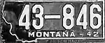 1942–43 | Embossed white serial on black plate with state-shaped border; "MONTANA–42" below serial | none | 1-12345 10-1234 |