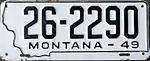 1949 | Embossed black serial on white plate with state-shaped border; "MONTANA–49" below serial | none | 1-12345 10-1234 |
