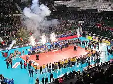 Just before the start of the 2020–21 season the city of Friedrichshafen announced the ZF Arena, home of VfB Friedrichshafen since 2004, is closed immediately due to possible rust in the roof structure.[1] After being forced to train in small gyms and to swap home games with the opponents, VfB Friedrichshafen moved to Zeppelin Cat Hall A1 which is a hall of the Friedrichshafen fair. The first match in the new arena was against Berlin Recycling Volleys, and took place on 21 November 2020.[2][3]