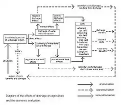 Subsurface land drainage[1] aims at controlling the water table of the groundwater in originally waterlogged land at a depth acceptable for the purpose for which the land is used. The depth of the water table with drainage is greater than without.