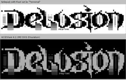 The first art scene group that focused on the extended character set of the PC in their artwork was called "Aces of ANSI Art", or <A.A.A>. Some members left in 1990 and formed a group called "ANSI Creators in Demand", or ACiD. In that same year the second major underground art scene group "Insane Creators Enterprise", or ICE, was founded.[40]