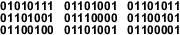A bit string, interpreted as a binary number, can be translated into a decimal number. For example, the lower case a, if represented by the bit string 01100001 (as it is in the standard ASCII code), can also be represented as the decimal number 97.