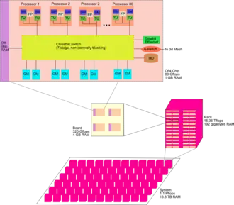 Cellular architecture is a type of computer architecture prominent in parallel computing. IBM's Cell microprocessor was the first cellular architecture to reach the market. Cellular architecture takes multi-core architecture design to its logical conclusion, by giving the programmer the ability to run large numbers of concurrent threads within a single processor. Each 'cell' is a compute node containing thread units, memory, and communication. Speed-up is achieved by exploiting thread-level parallelism inherent in many applications.