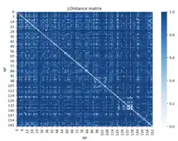 One example of this in biology is used in the 3D mapping of a genome. Information of a mouse's HIST1 region of chromosome 13 is gathered from Gene Expression Omnibus.[34] This information contains data on which nuclear profiles show up in certain genomic regions. With this information, the Jaccard distance can be used to find a normalized distance between all the loci.