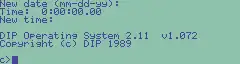 The Portfolio uses an Intel 80C88 CPU running at 4.9152 MHz and runs "DIP Operating System 2.11" (DIP DOS), an operating system mostly compatible to MS-DOS 2.11, but with some DOS 2.xx functionality lacking and some internal data structures more compatible with DOS 3.xx. It has 128 KB of RAM and 256 KB of ROM which contains the OS and built-in applications. The on-board RAM is divided between system memory and local storage (the C: drive). The LCD is monochrome without backlight and has 240 × 64 pixels or 40 characters × 8 lines.