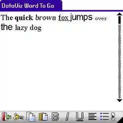 Documents To Go is BlackBerry's cross-platform office suite for Palm OS, Windows Mobile, Maemo, BlackBerry OS, Symbian, Android, and iOS. Also, a larger-screen version would have been included with the Palm Foleo, but Palm, Inc. cancelled the device before its release.