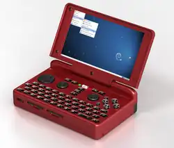 The DragonBox Pyra is an upcoming Linux-based handheld computer equipped with a keyboard and gaming controls. The project entered prototyping stage in 2015. Pre-orders began on 1 May 2016, with a final release date still undefined.[1] In August 2020 the first production model had been shipped, but only to developers, as the software wasn't ready.[2][3]