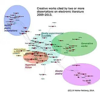 - ^ a b Rettberg, Jill Walker (2014-07-06). "Visualising Networks of Electronic Literature: Dissertations and the Creative Works They Cite". Electronic Book Review. Archived from the original on 2022-10-17. Retrieved 2022-10-17.