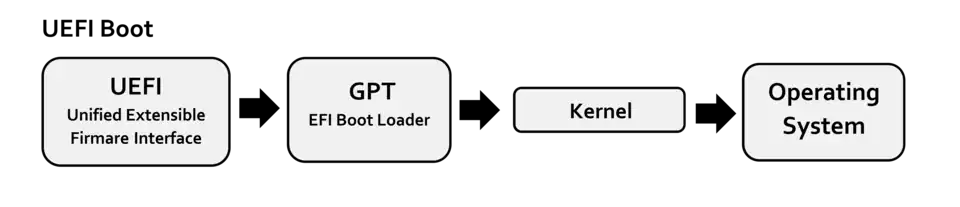 UEFI systems can access GPT disks and boot directly from them, which allows Linux to use UEFI boot methods. Booting Linux from GPT disks on UEFI systems involves creation of an EFI system partition (ESP), which contains UEFI applications such as bootloaders, operating system kernels, and utility software.[38][39][40] Such a setup is usually referred to as UEFI-GPT, while ESP is recommended to be at least 512 MB in size and formatted with a FAT32 filesystem for maximum compatibility.[34][36][41]
