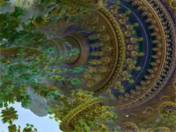 In mathematics, a fractal is a geometric shape containing detailed structure at arbitrarily small scales, usually having a fractal dimension strictly exceeding the topological dimension. Many fractals appear similar at various scales, as illustrated in successive magnifications of the Mandelbrot set.[1][2][3][4] This exhibition of similar patterns at increasingly smaller scales is called self-similarity, also known as expanding symmetry or unfolding symmetry; if this replication is exactly the same at every scale, as in the Menger sponge, the shape is called affine self-similar.[5] Fractal geometry lies within the mathematical branch of measure theory.