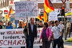 In 2014 or 2015, he was involved in organising Pegida in Munich together with Heinz Meyer, who became its leader, and Stefan Werner.[8] He took up a role as the movement's spokesperson and "leading intellectual".[8][9] He addressed several Pegida rallies in Munich, including one on 7 September 2015 alongside Tatjana Festerling, where he criticised "Juncker’s and Merkel’s human rights dogmatism" and argued that the 2015 European migrant crisis was beyond Europe's responsibility.[10]
