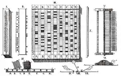 While working in the statistics department of the Police Ministry, Korsakov became intrigued with the possibility of using machinery to "enhance natural intelligence". To this end, he devised several devices which he called "machines for the comparison of ideas".[2] These included the "linear homeoscope with movable parts", the "linear homeoscope without movable parts", the "flat homeoscope", the "ideoscope", and the "simple comparator". The purpose of the devices was primarily to facilitate the search for information, stored in the form of punched cards or similar media (for example, wooden boards with perforations). Korsakov announced his new method in September 1832, and rather than seeking patents offered the machines for public use.