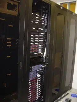 A server farm or server cluster is a collection of computer servers, usually maintained by an organization to supply server functionality far beyond the capability of a single machine. They often consist of thousands of computers which require a large amount of power to run and to keep cool. At the optimum performance level, a server farm has enormous financial and environmental costs.[1] They often include backup servers that can take over the functions of primary servers that may fail. Server farms are typically collocated with the network switches and/or routers that enable communication between different parts of the cluster and the cluster's users. Server "farmers" typically mount computers, routers, power supplies and related electronics on 19-inch racks in a server room or data center.
