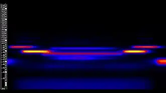Sonic Visualiser represents acoustic features of the audio file either as a waveform or as a spectrogram.[4] A spectrogram is a heatmap, where the horizontal axis represents time, the vertical axis represents frequency, and the colors show presence of frequencies. The sharpness and smoothness of the spectrogram can be configured.[5] There are three types of spectrogram: