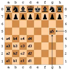 The moves of a chess game are written down by using a special chess notation. This is compulsory for any competitive game.[4]Article 8 & Appendix E Usually, algebraic chess notation is used.[24] In algebraic notation, each square has one name, regardless of whether you are looking from White's side of the board or Black's. Here, moves are written in the format of: initial of piece moved – file where it moved – rank where it moved. For example, Qg5 means "queen moves to the g-file and 5th rank" (that is, to the square g5). If there are two pieces of the same type that can move to the same square, one more letter or number is added to show the file or rank from which the piece moved, e.g. Ngf3 means "knight from the g-file moves to the square f3". The letter P showing a pawn is not used, so that e4 means "pawn moves to the square e4".
