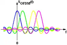 An example of OFDM, with 4 different signals, shown in different colors
