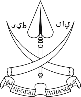 19-- | Jata negeri Pahang Darul Makmur | Ketua lembing berpalang oleh dua bahagian teks yang ditulis di Jawi, disokong oleh sepasang gading dan berdasarkan tatal yang mengandungi "Negeri Pahang" yang ditulis dalam Rumi dan Jawi. |
